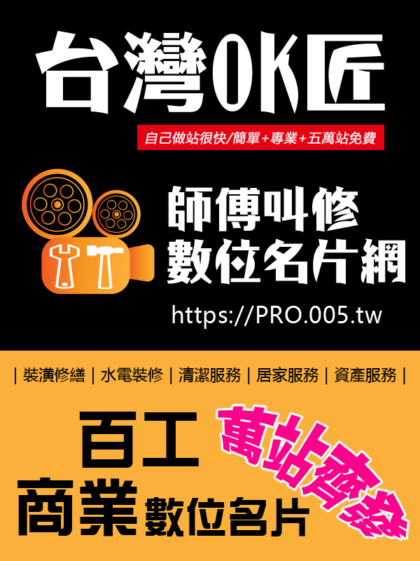 【台灣OK匠 / 師傅叫修名片網】並非是個單獨的維修或媒合平台,而是屬於一個更大的商用數位名片與微型網站建置服務生態系統中的一個專門主題平台。這個網站或服務的主要目的,是為台灣的各種技術人員和維修師傅(如水電、裝潢、清潔、石材養護等各行各業的「匠人」)提供數位化的宣傳工具。